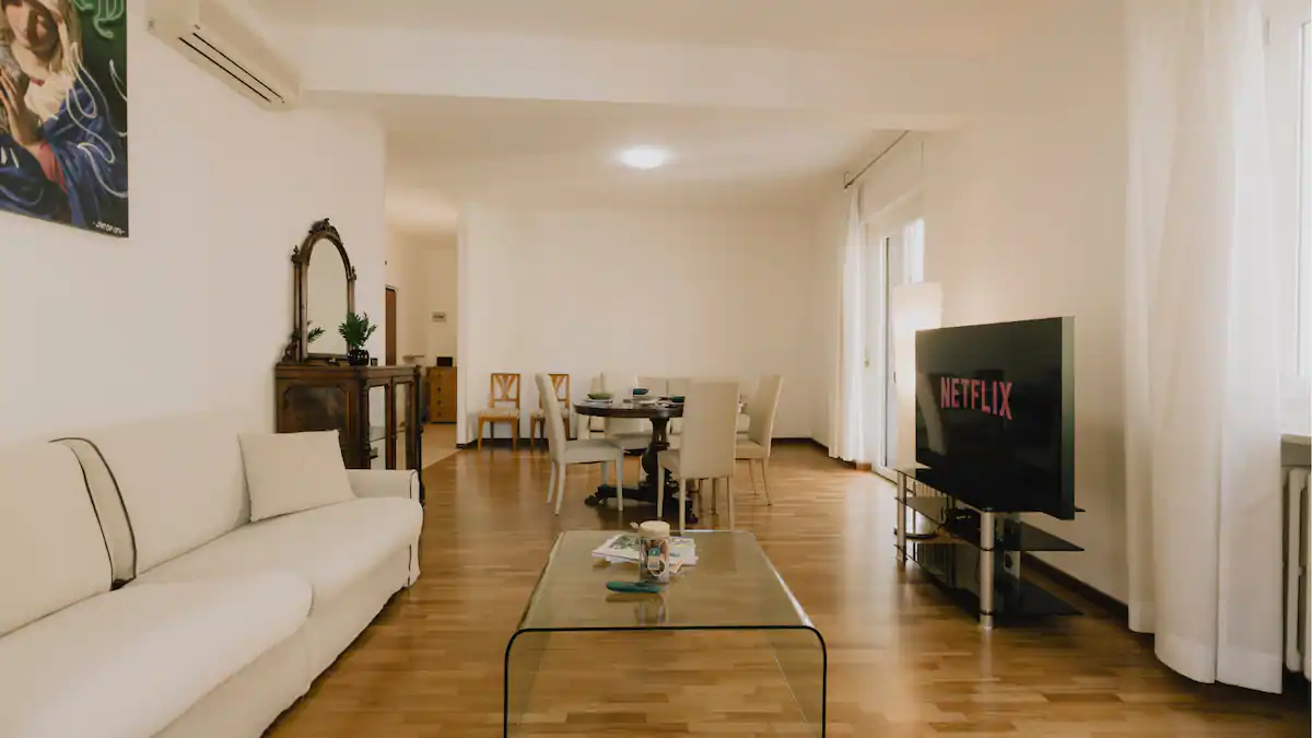 A due minuti dall'arena di Verona e da castelvecchio, proponiamo un ampio trilocale con due spaziose camere da letto matrimoniali con letti queen size, un soggiorno luminoso arricchito da una Sky Glass TV dotata di netflix, amazon prime e sky. L'appartamento è perfetto sia per coppie sia per numerosi gruppi di viaggiatori e famiglie